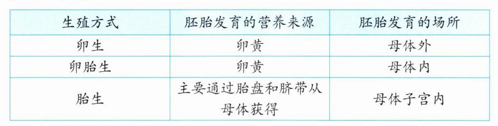 |生殖方式|胚胎发育的营养来源|胚胎发育的场所|