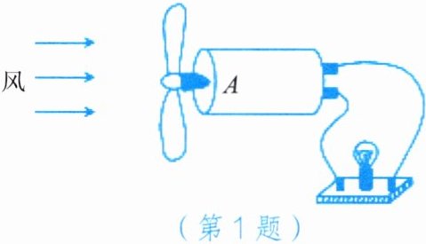 1. 右图所示的小制作中,装置A中有磁铁和可转动的线圈,当有风吹向风扇时,扇叶转动,灯泡发光。装置A的工作原理是(