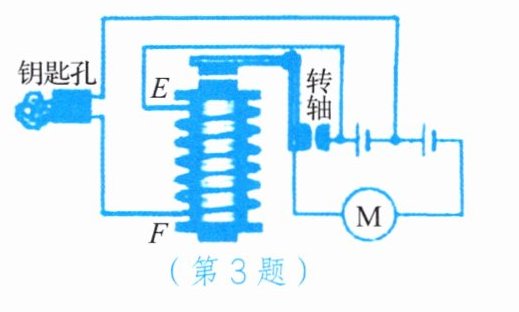 3. 右图为汽车启动原理图,汽车启动时,需将钥匙插入钥匙孔并旋转(相当于接通电路)。下列说法错误的是(
