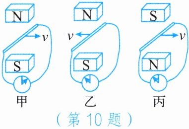 10. 右图是“探究感应电流的方向与哪些因素有关”的实验示意图,比较甲、乙两图可以得出感应电流的方向与