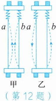 12. 科学家发现两根平行导线通电后有如图所示的现象(图中实线、虚线分别表示导线通电前、后的情况)。