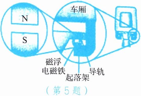 5. 右图是“追风者”磁悬浮列车悬浮原理的示意图。该列车通过磁体之间的相互作用,悬浮在轨道上方,以提高运行速度,这里的相互作用是指(