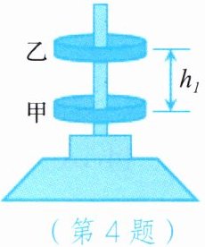4. “悬空的磁环”实验中,所用的磁环都一样,中间的塑料管是光滑的。当甲、乙两个磁环处于静止状态时,它们之间的距离为$h_{1}$,如右图所示。再往乙的正上方套入丙磁环,当丙悬空并静止后,甲、乙之间的距离变为$h_{2}$,乙、丙之间的距离为$h_{3}$。已知磁环间的斥力随它们之间距离的减小而增大,则$h_{1}$、$h_{2}$、$h_{3}$之间的大小关系满足(