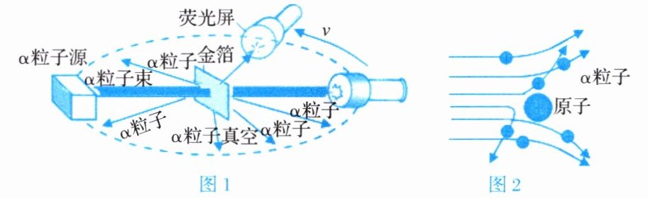 (2)多数α粒子保持原来的运动方向,说明原子中间的空隙很大;少数α粒子发生较大角度的偏转,说明中间有一个很小且坚固的结构,带正电;极少数α粒子发生反弹,说明原子的大部分质量集中到了一个很小的结构上。