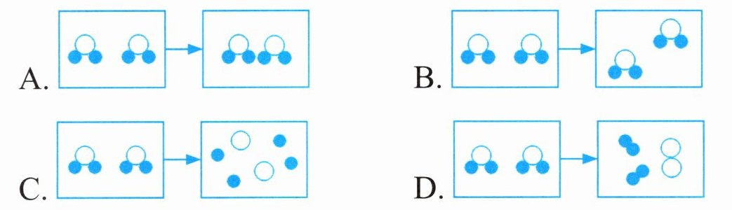 3. 水是由水分子构成的。若用“●”表示氢原子,“○”表示氧原子,则下图中能表现“水蒸发”微观本质的是(