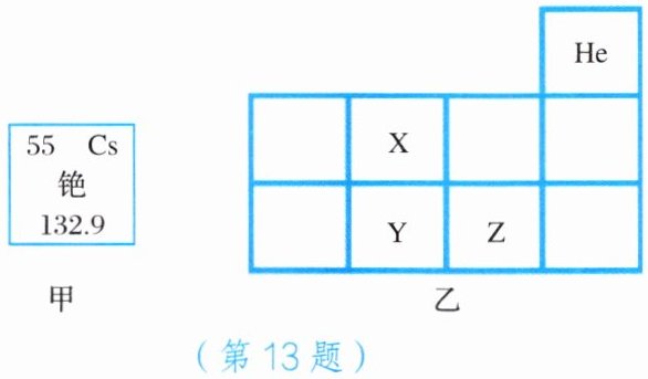 (2)图乙为元素周期表的一部分,X、Y、Z代表三种不同的元素,以下判断正确的是
