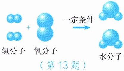13. 相比于普通汽车,氢燃料电池车的排放物只有水,没有其他污染物。右图是氢燃料电池内发生反应的微观示意图,从图中获得的信息正确的是(