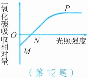 12. 图中曲线表示一段时间内某植物叶片吸收二氧化碳与光照强度的关系。以下分析正确的是(