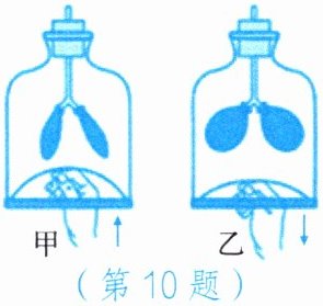 10. 右图模拟的是呼吸时膈肌的运动情况,请据图回答下列问题。
