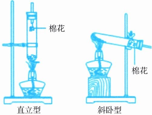 解:直立型装置中,高锰酸钾粉末容易进入导管,堵塞导管,影响实验的安全和顺利进行;而斜卧型装置可以防止加热时高锰酸钾粉末进入导管,保证实验的安全和正常进行,所以老师一直强调用高锰酸钾加热制取氧气时必须采用斜卧型。