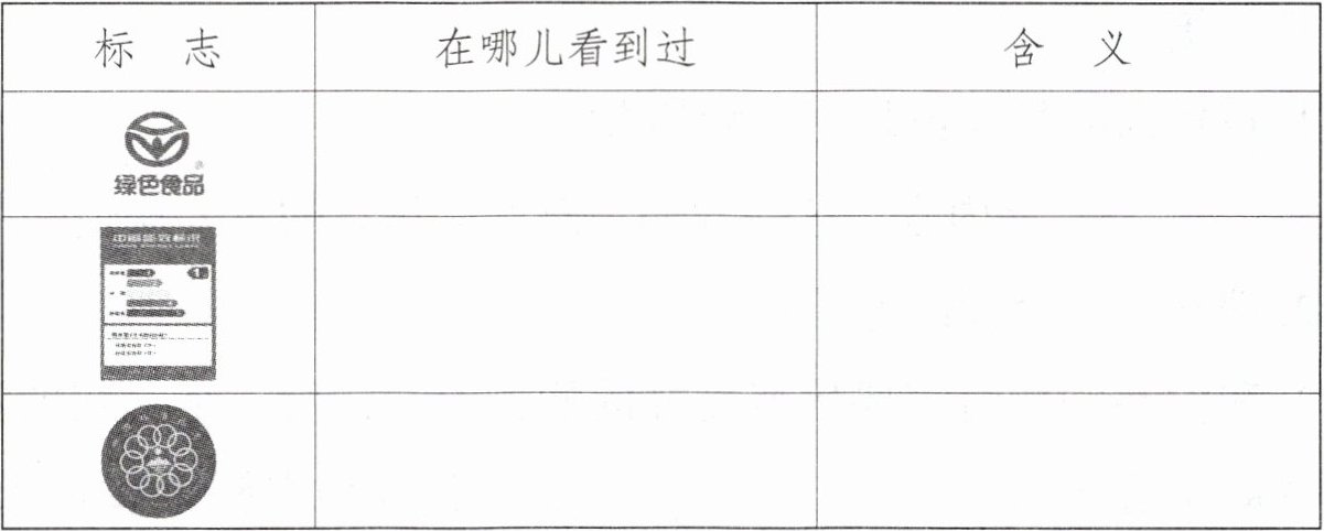 绿色食品标志:在一些食品包装上看到过,含义是指产自优良生态环境、按照绿色食品标准生产、实行全程质量控制并获得绿色食品标志使用权的安全、优质食用农产品及相关产品。