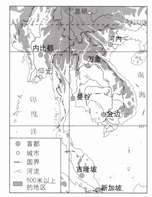 3. 中南半岛属热带季风气候,水热充足(热量充足,降水丰富,雨热同期);河流沿岸及河口三角洲地区地形平坦,土壤肥沃;河流众多,灌溉水源充足等。