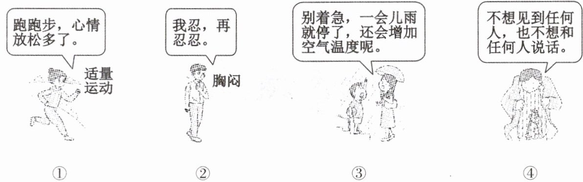 5. 某班召开“做情绪的主人”主题班会,老师展示了下列四张调节情绪方法的图片。其中,属于正确调节情绪的有 (