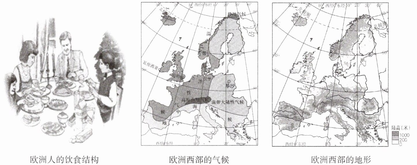 实践资料 欧洲西部的气候特点与地形有关,而且欧洲西部的畜牧业发达。民以食为天。不管是食物的烹饪方法还是口味,欧洲西部的饮食文化与东方有着很大的差异。牛排、奶酪是欧洲人的主要食物之一,他们的日常饮食以牛羊肉和乳制品为主。