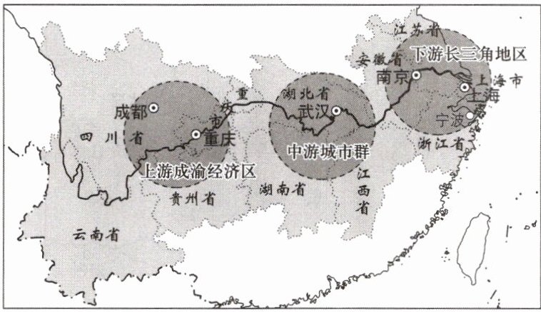2. 指出长江经济带的三大城市群中,规模最大的城市群和其中心城市的名称。