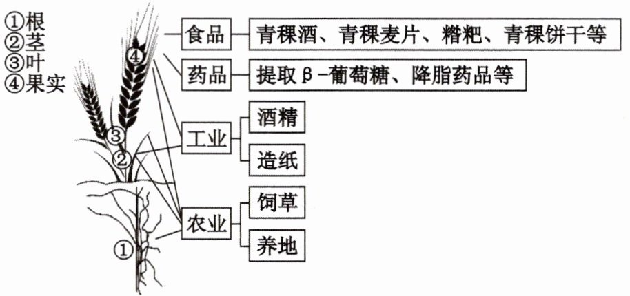 3. 结合上图的介绍,概括青稞果实的主要经济用途。
