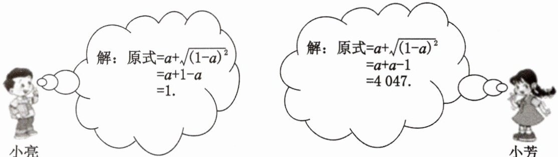 2.当α= 2024时,求a+ $\sqrt{a^2-2a+1}$的值.如图是小亮和小芳的解答过程: