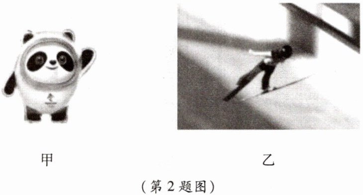 (1)冬奥会之所以“怕”下雪,是因为降雪带来的新增积雪,会使赛道表面松软,使得摩擦力____(填“减小”“不变”或“增大”)。若此时让“冰墩墩”(如图甲所示)分别站在松软的积雪赛道和水泥地面上,设它对积雪赛道的压强为$p_1,$对水泥地面的压强为$p_2,$则$p_1____($填“小于”“等于”或“大于$”)p_2。$若“冰墩墩”的质量为30kg,一只脚的面积为$50cm^2,$则它对赛道的压强为____Pa。(g= 10N/kg)