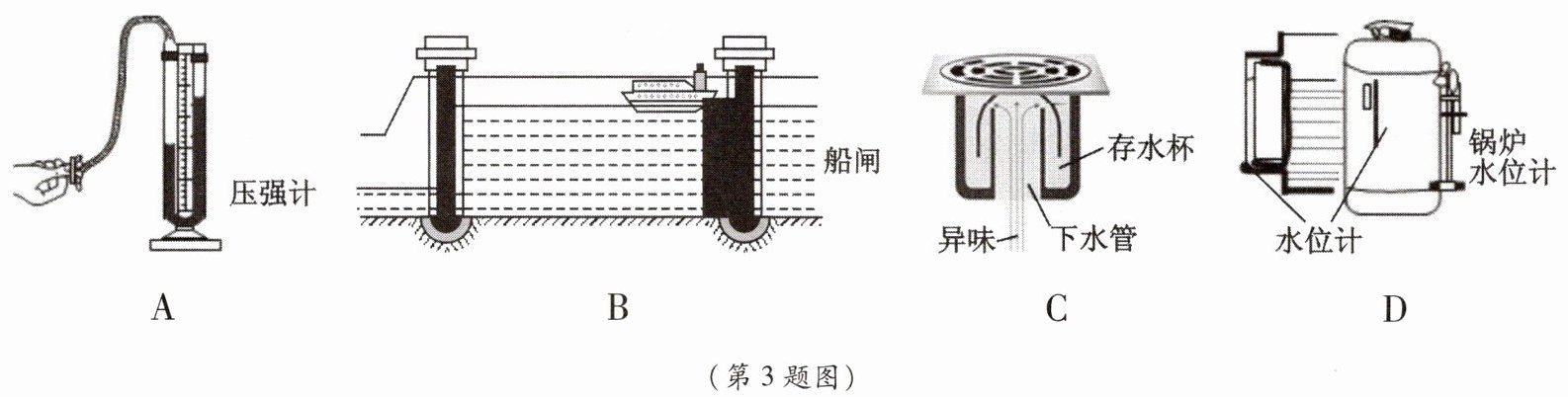 3. 下列图示事例中不是利用连通器原理工作的是(
