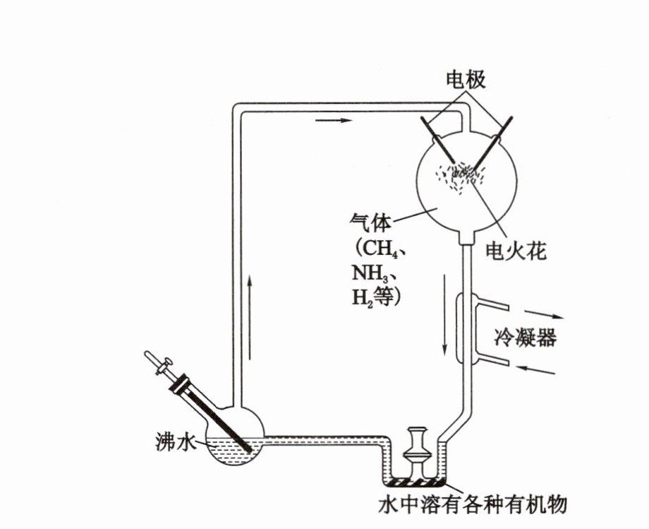 C. 烧瓶中的沸水模拟了高温条件下的原始海洋