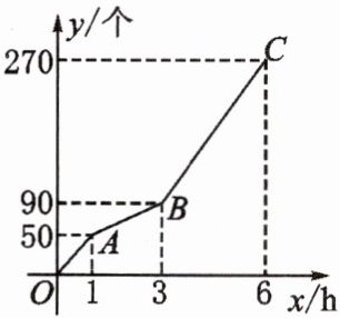 3.甲、乙两台机器共同加工一批零件,一共用了$6h$,在加工过程中乙机器因故障停止工作,排除故障后,乙机器提高了工作效率且保持不变继续加工,甲机器在加工过程中工作效率保持不变,甲、乙两台机器加工零件的总数$y$(单位:个)与甲加工时间$x$(单位:$h$)之间的函数图象如图所示.