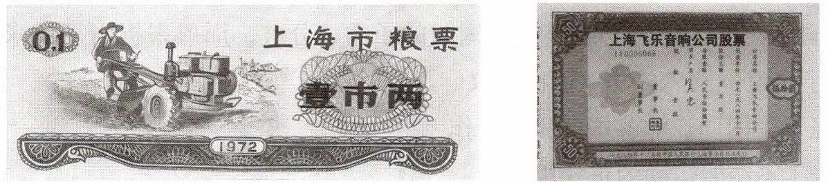 4. 下图是上海在不同时期发行的粮票与股票,其反映了