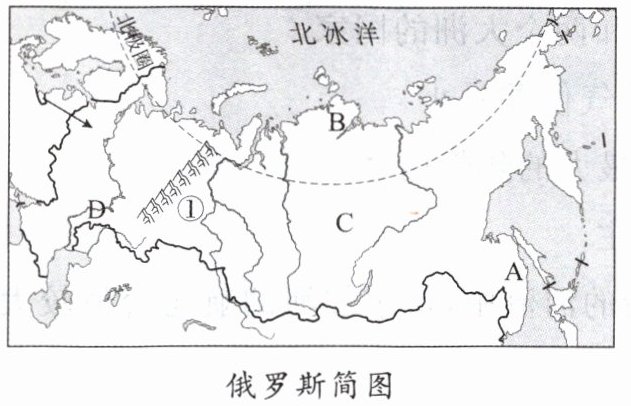 16. 俄罗斯是我国主要的陆上邻国,自然资源丰富,重工业发达,农业主要分布在东欧平原,自然环境和社会经济东西差异显著。结合下图,回答问题。