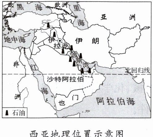 西亚被称为“三洲五海之地”。下图为“西亚地理位置示意图”,读图,完成1~3题。
