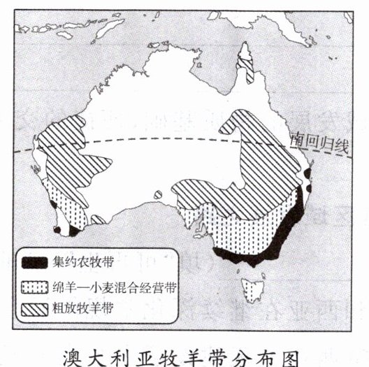 读“澳大利亚牧羊带分布图”,完成14~15题。