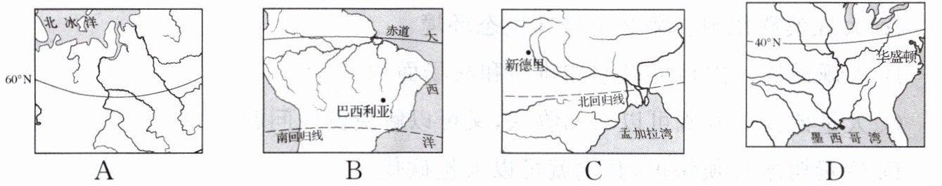 5. 下图所示的四条河流中,两岸分布有大片热带雨林的是 (