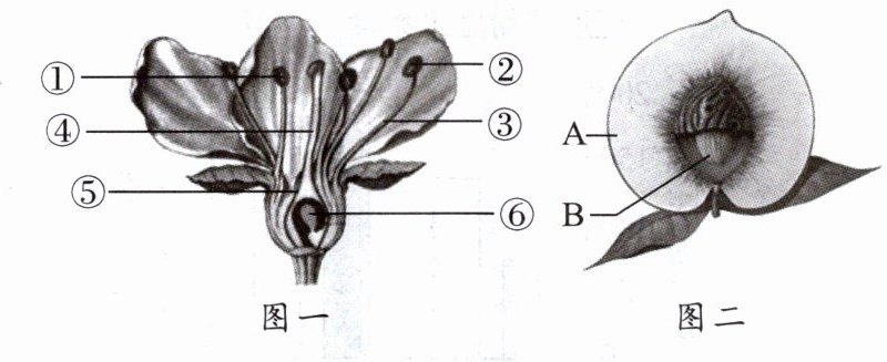 ;桃花开放后,很多蜜蜂在花丛中飞来飞去,身上常沾有一些黄色的粉末,这些粉末是由图一中的②