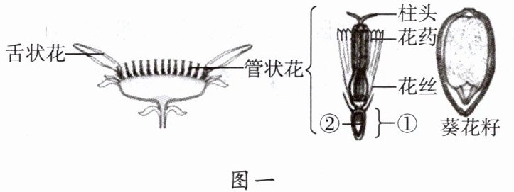 (1)葵花籽结在向日葵的花盘上,花盘上有两种花型。如图一所示,分布在边缘的