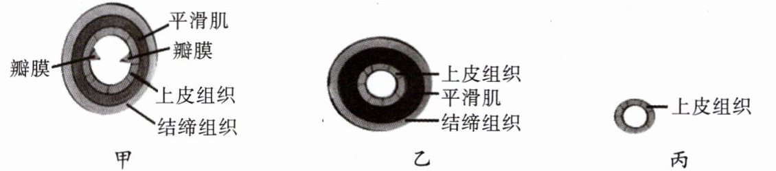 D. 血液在三类血管中的流动方向为甲→丙→乙