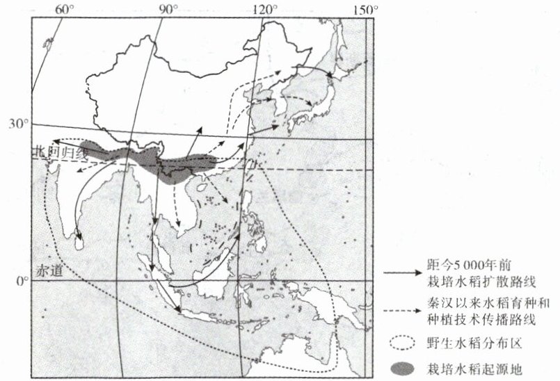 。(2)水稻育种技术彰显了华夏人民的智慧。秦汉时期,长江流域培育的水稻新品种传往我国东北地区和朝鲜半岛,然后向东传入