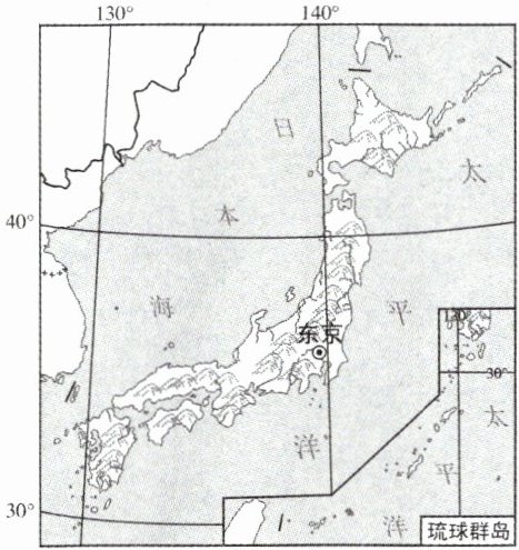 读日本地形示意图,完成5、6题。