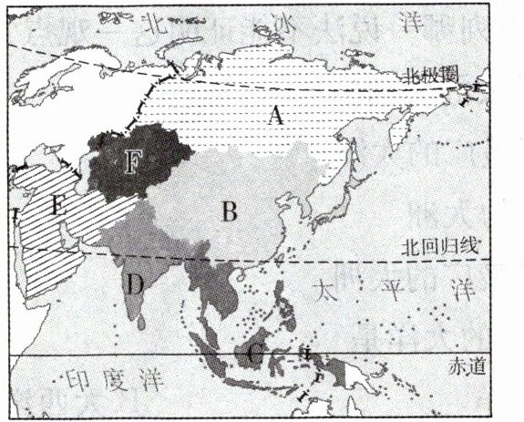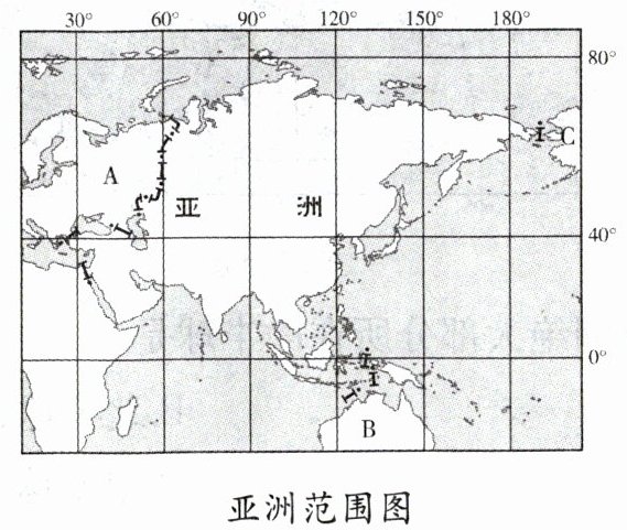 (1)通常,人们按地理方位,把亚洲分为东亚、东南亚、南亚、西亚、北亚和中亚6个地区。按照字母顺序写出相对应的地区名称:A