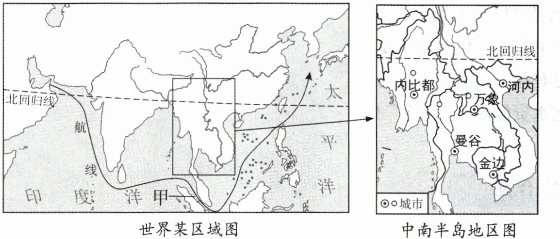 2.读世界某区域图和中南半岛地区图,回答下列问题。