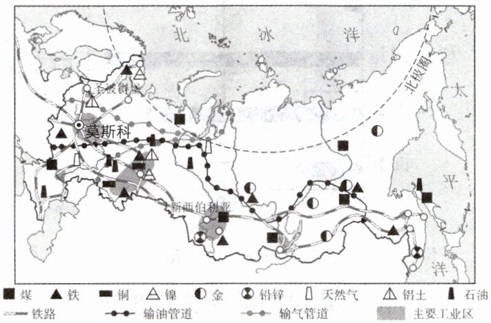 俄罗斯是世界石油、天然气的重要出口国之一。读俄罗斯铁路、管道分布图,完成4、5题。