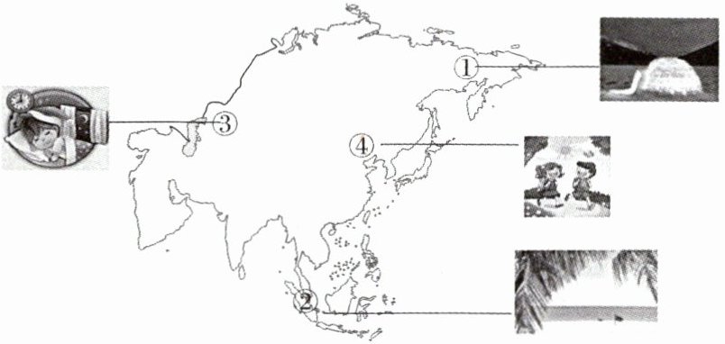 亚洲是世界第一大洲,地域辽阔,自然景观和社会经济活动差异明显。读图,回答1、2题。