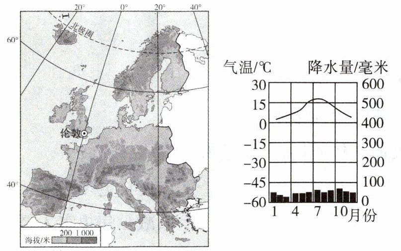 1.读欧洲西部地形分布图和该地区某地的气候资料图,回答下列问题。