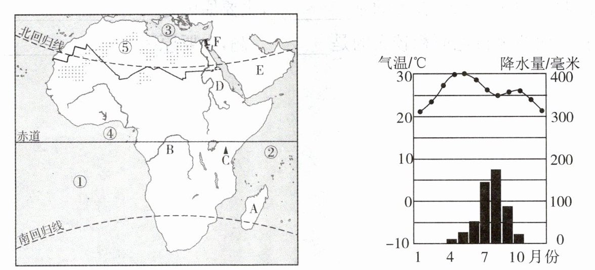 (方向)倾斜。(3)右上图反映了该地区的主要气候类型是