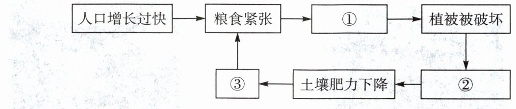 7. 非洲人口、粮食与环境之间关系紧张,形成恶性循环,下图中①②③对应的内容依次是 (