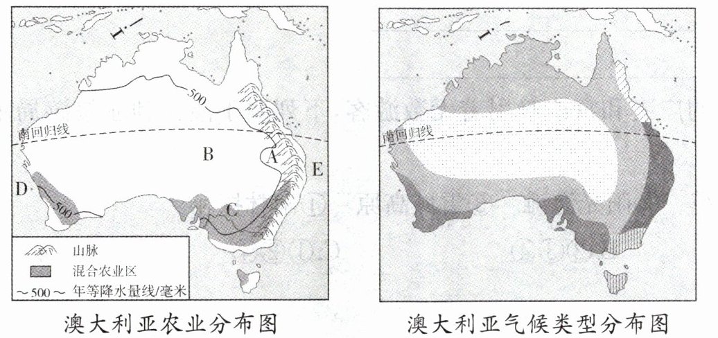 (2)澳大利亚绵羊品种繁多,不同品种的绵羊适应不同的气候条件,其中细毛羊喜欢温暖干燥的气候,据此推测图中