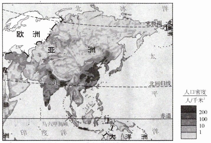 读亚洲人口分布图,完成4、5题。