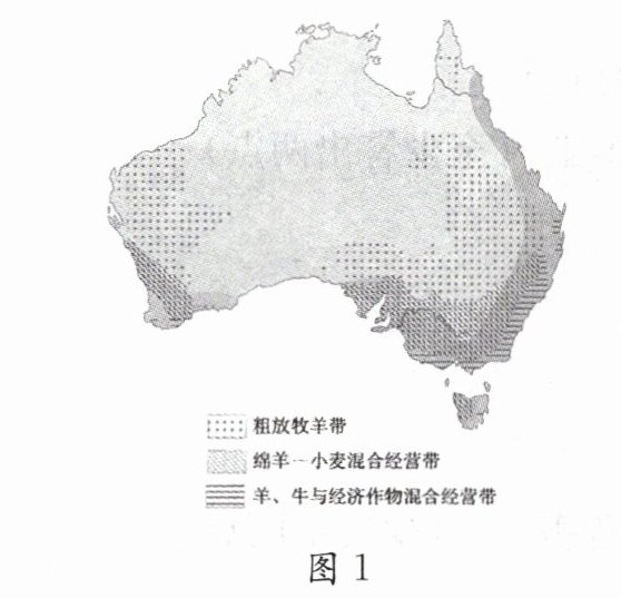 (1)澳大利亚被称为“骑在羊背上的国家”,其畜牧业发达,自东南和西南沿海向内陆依次形成了