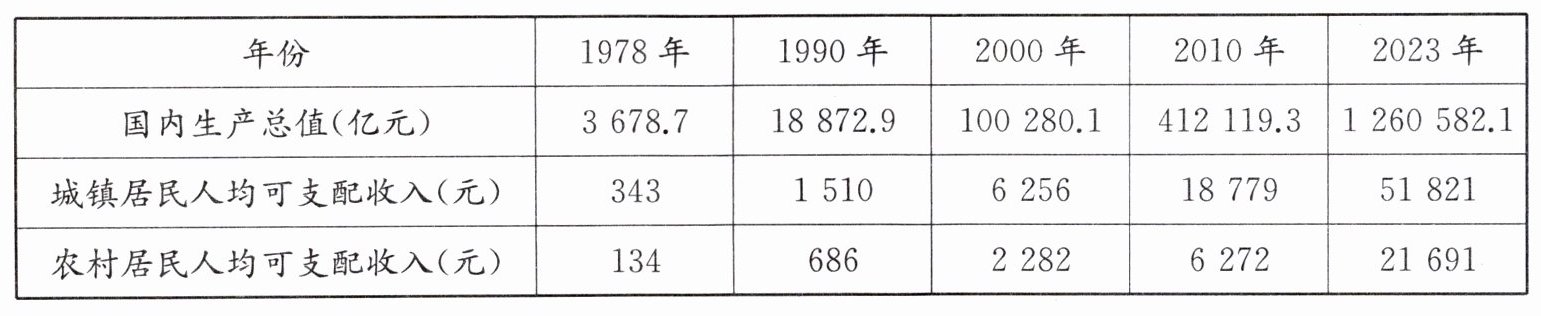 材料三 下面是1978—2023年我国经济发展情况简表。
