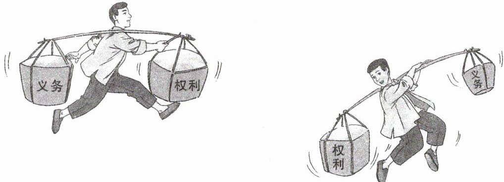 4.下面漫画《挑“担子”》反映了日常生活中人们对待权利与义务的不同态度,不同态度决定不同人生之路。对此理解正确的是 (