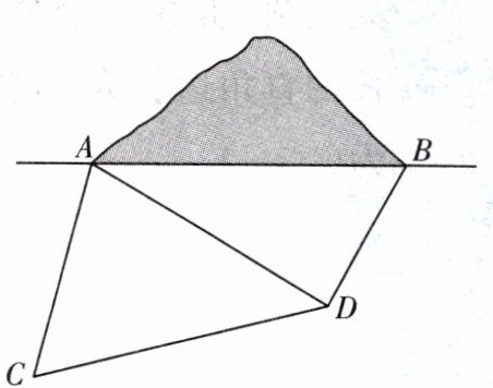 13. 如图,某工程队准备从$A$到$B$修建一条隧道,测量员在直线$AB$的同一侧选定$C$,$D$两个观测点,测得$AC$长为$\frac{3}{2}\sqrt{2}km$,$CD$长为$\frac{3}{4}(\sqrt{2}+\sqrt{6})km$,$BD$长为$\frac{3}{2}km$,$\angle ACD = 60^{\circ}$,$\angle CDB = 135^{\circ}$($A$,$B$,$C$,$D$在同一水平面内)。