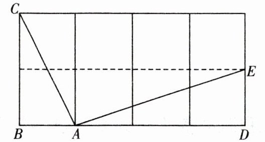 4. 如上右图,小正方形的边长均为 1,点 A,B,C,D,E 是网格线的交点,则$∠BAC-∠DAE$的度数为(