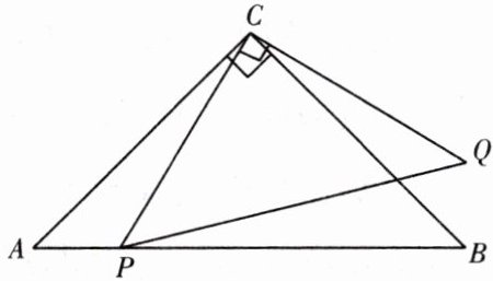 13. 如图,在$△ABC$中,$∠ACB=90^{\circ },AC=BC$,点 P 在斜边 AB 上,以 PC 为直角边作等腰直角三角形 PCQ,$∠PCQ=90^{\circ }$.试探究$PA^{2},PB^{2},PQ^{2}$三者之间的数量关系,并加以证明.